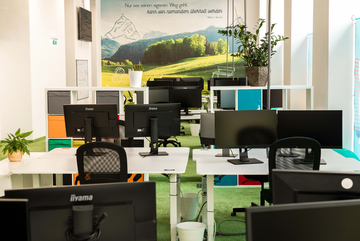 Dein Arbeitsplatz ist dir fix zugeteilt: dein Tisch, dein Reich. Das Beste? Bis auf den Tisch selbst, brauchst du nichts zu putzen. Das erledigen wir. Die Schreibtische sind teilweise höhenverstellbar und auch die Drehsessel spielen einige smarte Stücke. Die Ergonomie lässt grüßen. Zusätzliches Goodie: Es wird dir ein Bildschrim von uns zur Verfügung gestellt.